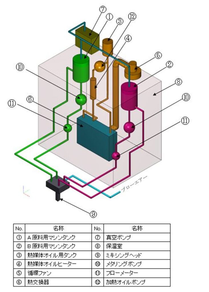| 原料温調方式 | A・B成分 | 熱媒体オイル温風循環方式 |