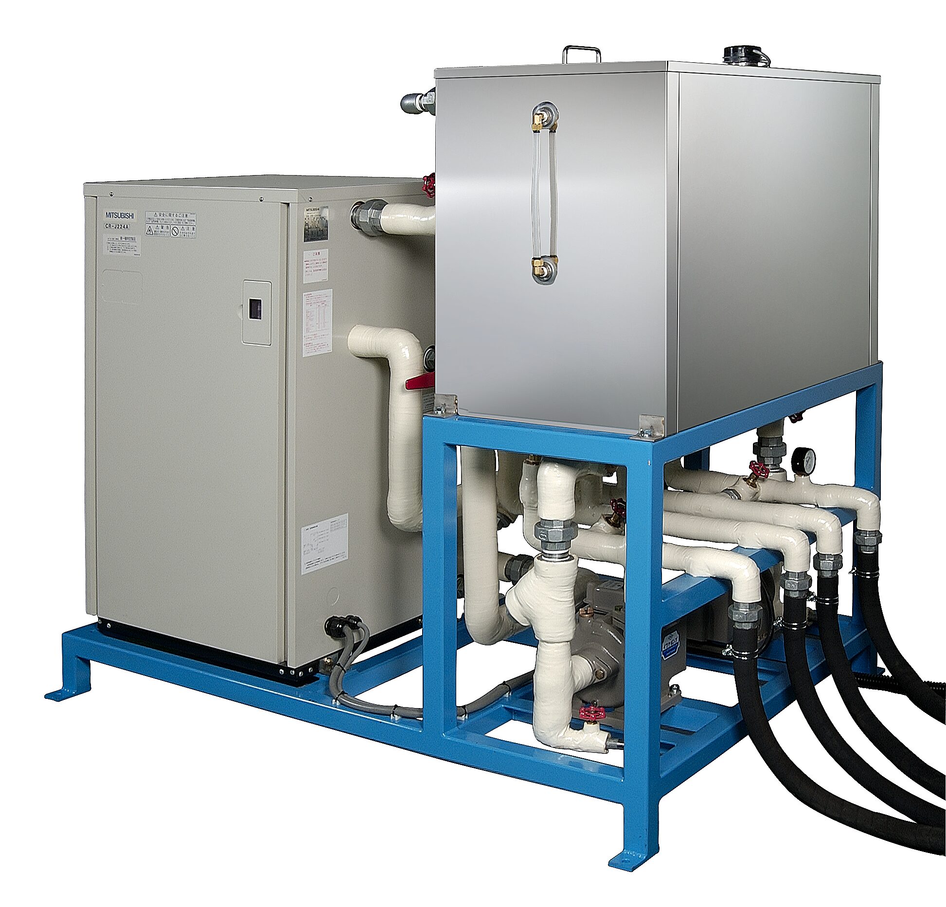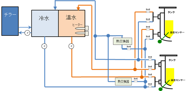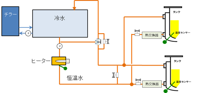 当社では、原料温度を設定温度迄自動的に高精度で保つ各種の温調装置を提供いたします。温調方式は、恒温水循環方式、温冷水循環方式、各原料タンク独立温調方式の3種類です。 原料用温調装置と熱交換器の組み合わせにより、より正確な原料温度管理が出来ます。