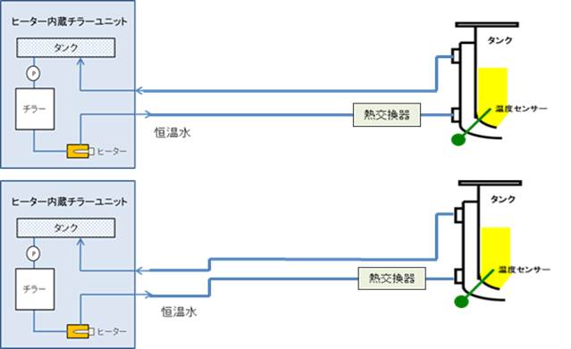 ポリオール、イソシアネートの温度域が異なる場合の温調