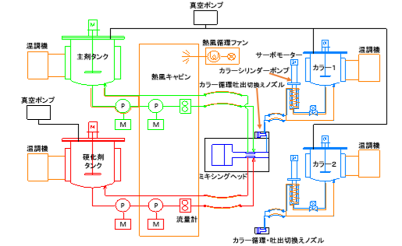 | 型式 | 吐出量(ℓ/Min) | 原料マシンタンク容量(ℓ) | カラーマシンタンク容量(ℓ) |