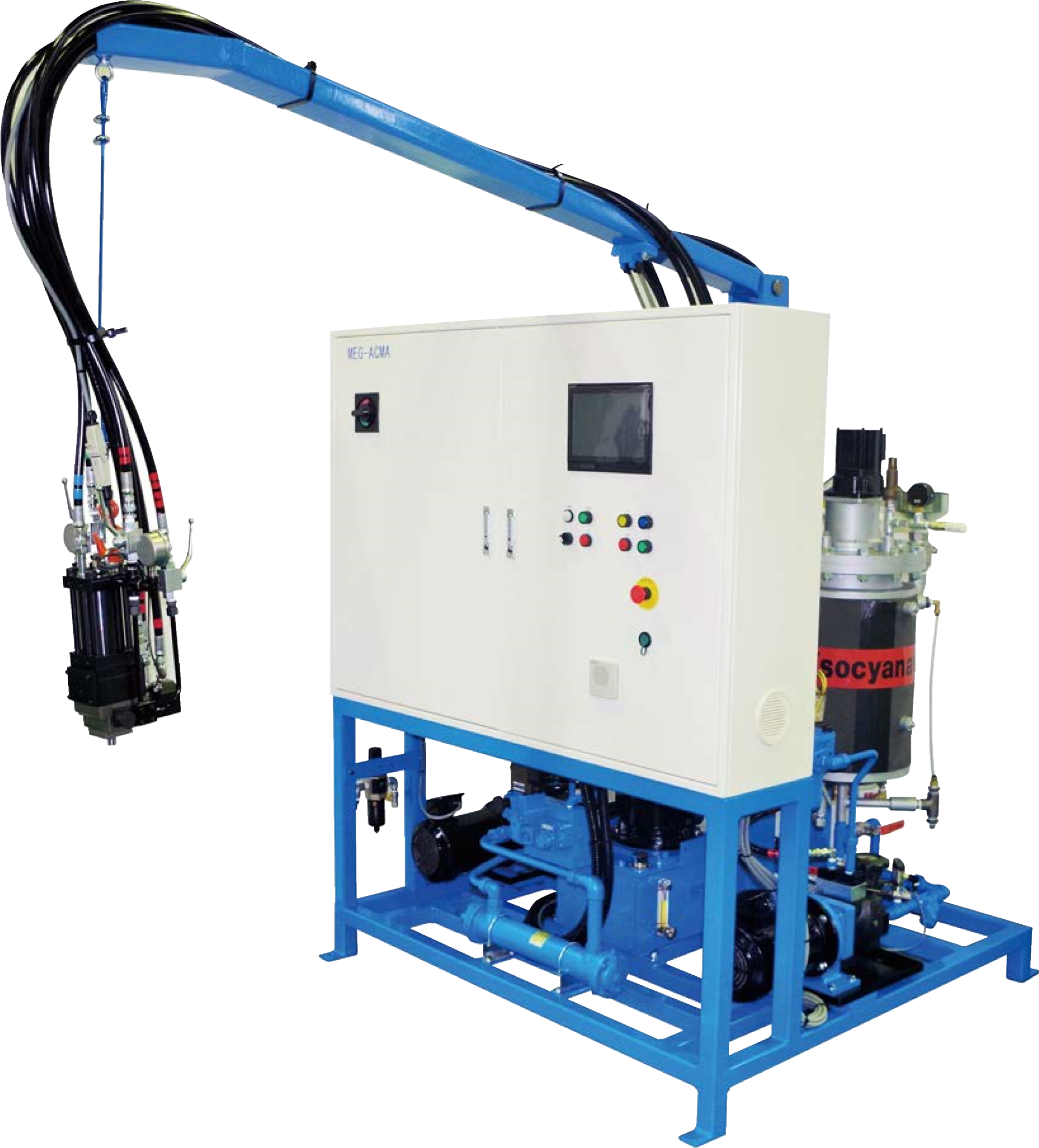 MEG-ACMA-MS型小吐出量用ポリウレタン高圧注入機は、小吐出量専用に開発された高機能の注入機です。