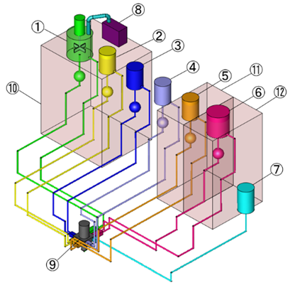 | ① | A原料用マシンタンク | ⑦ | ソルベントタンク |